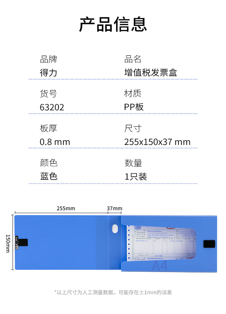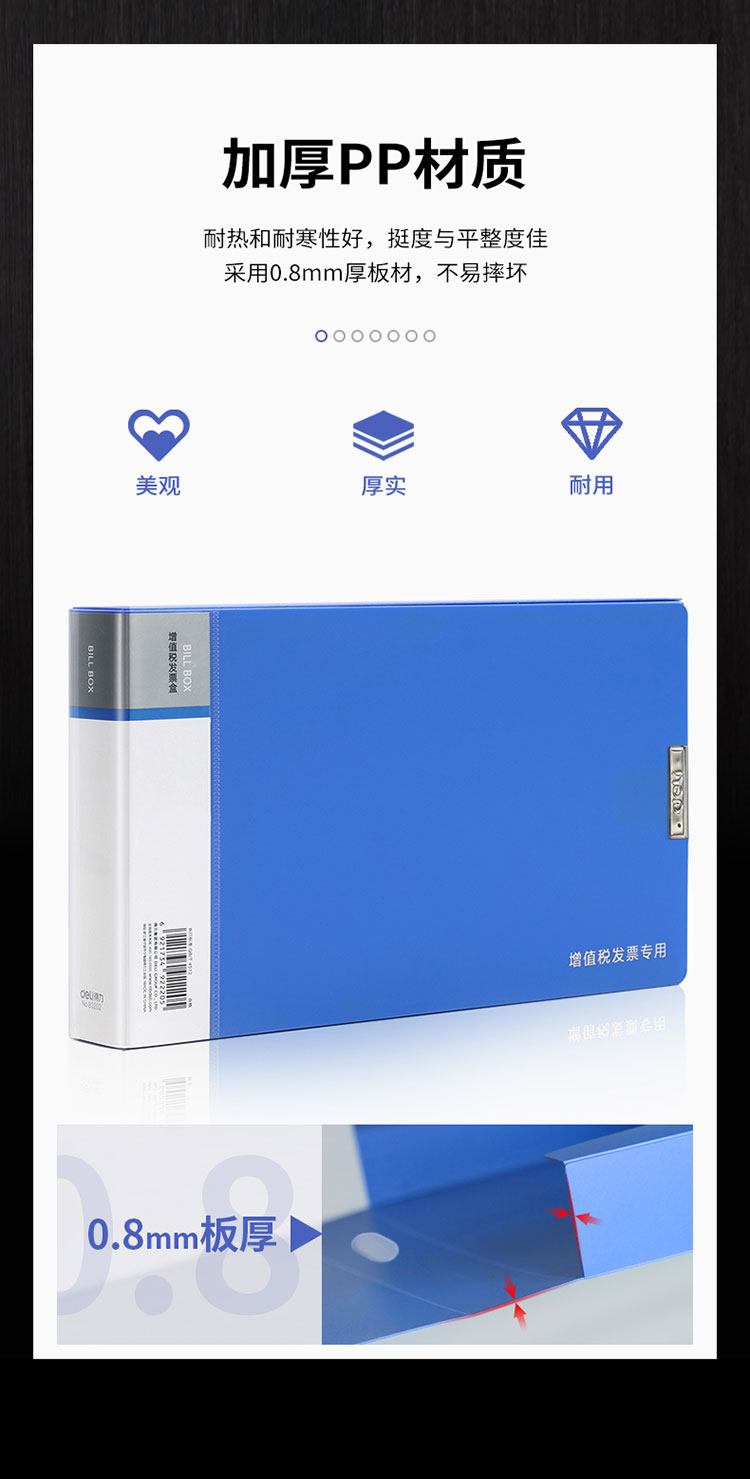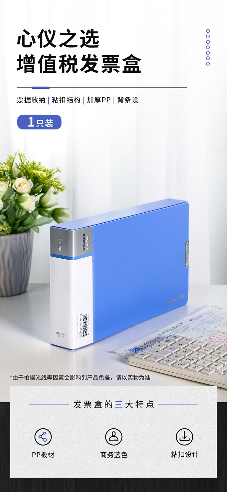 得力(deli)37mm文件盒增值税发票盒票据夹 加厚桌面财务党建试卷收纳 票据收纳 63202蓝色 自营