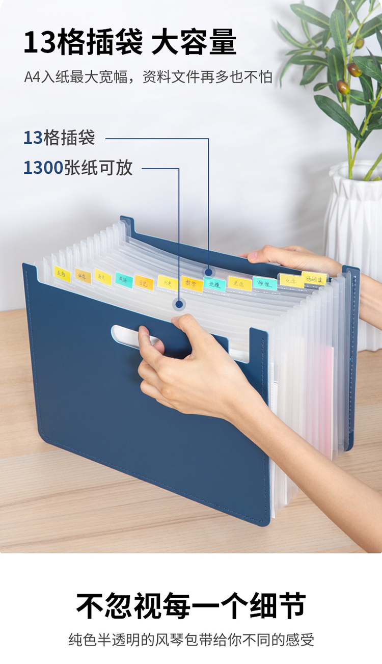 得力(deli)13格A4立式大容量风琴包 多层可伸缩文件框资料册收纳夹 自营