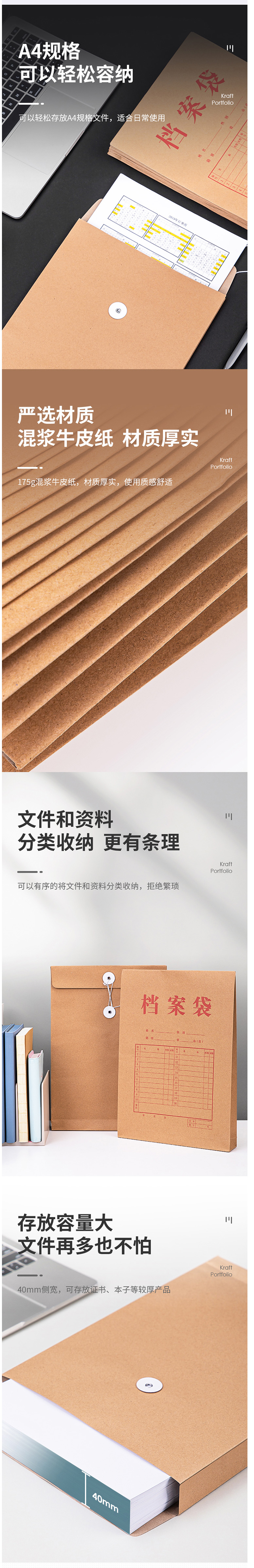 得力(deli)50只A4混浆175g牛皮纸档案袋 侧宽4cm 标书合同文件资料袋 自营