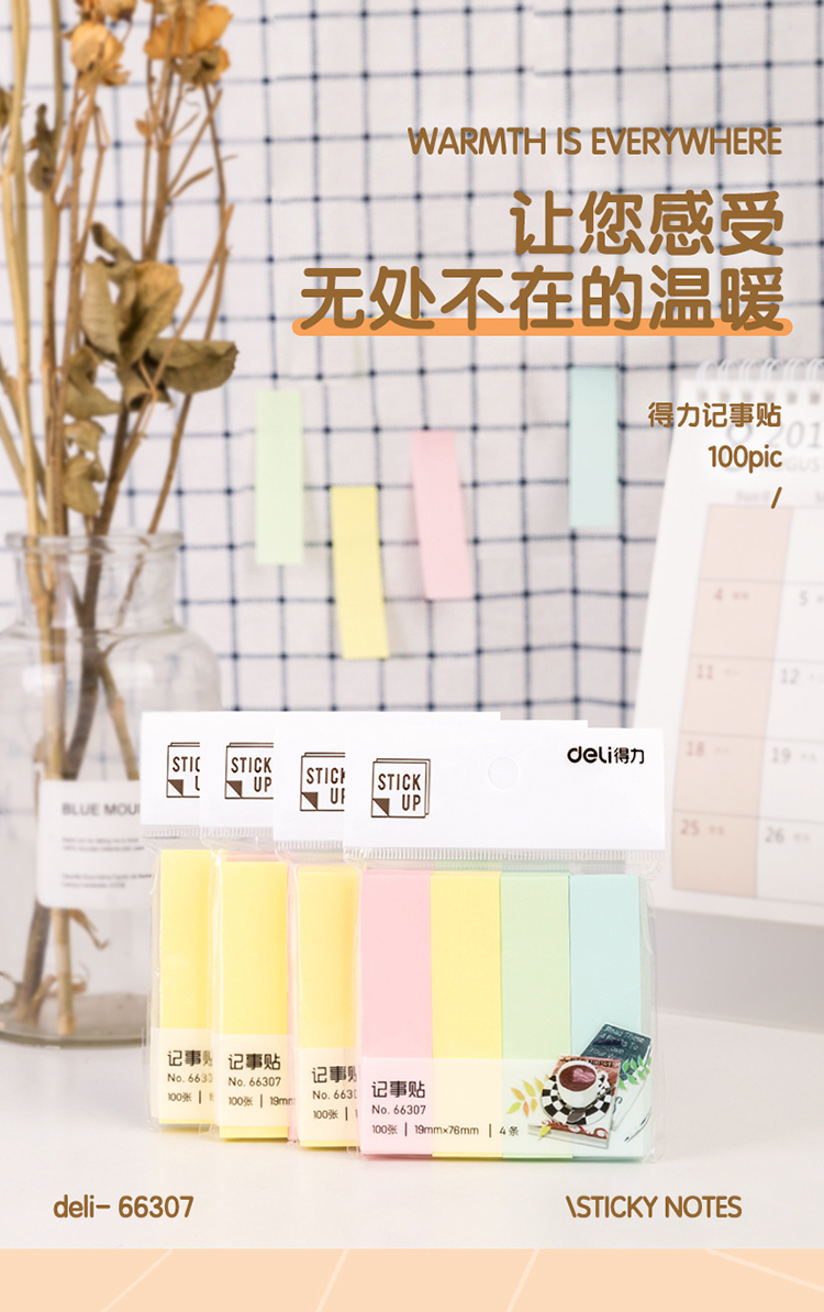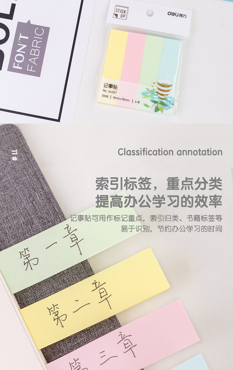 得力(deli)400张4色分条便利贴便签纸 76*19mm记事贴N次贴66307 自营