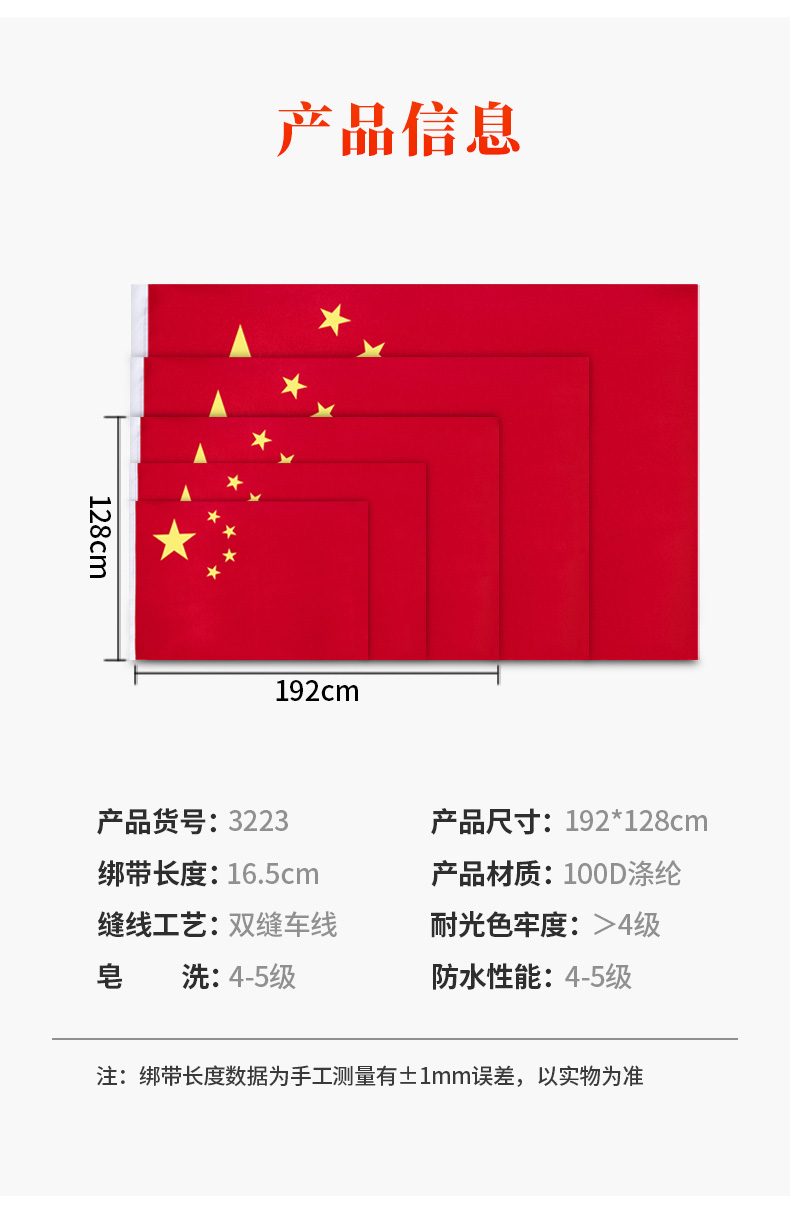 得力(deli)3号国旗/五星红旗(128*192cm) 3223 自营