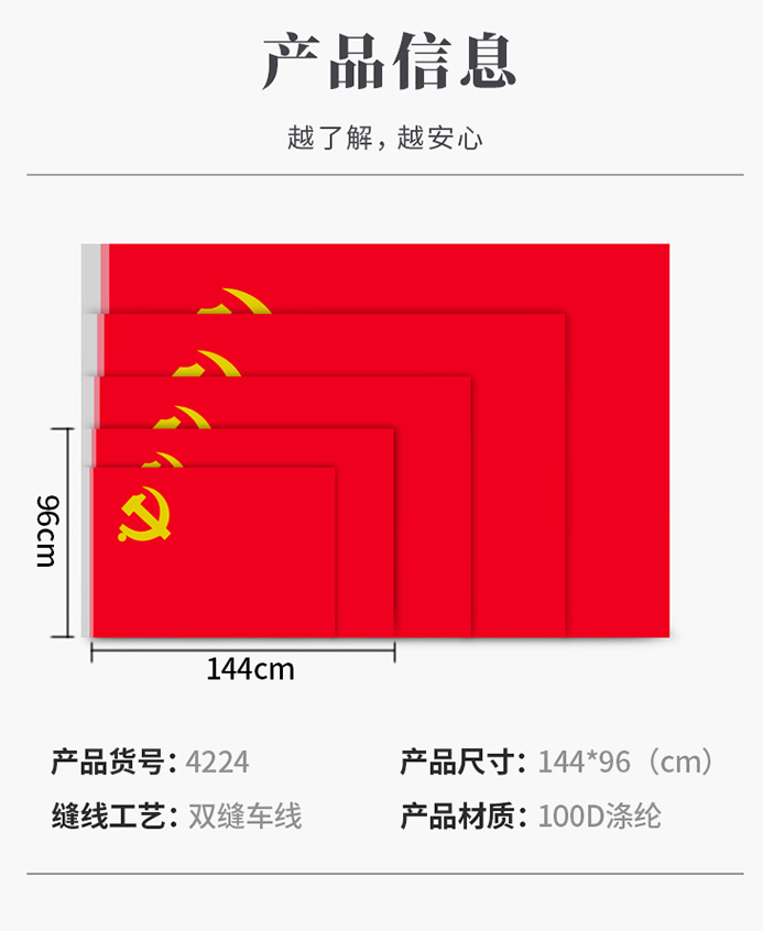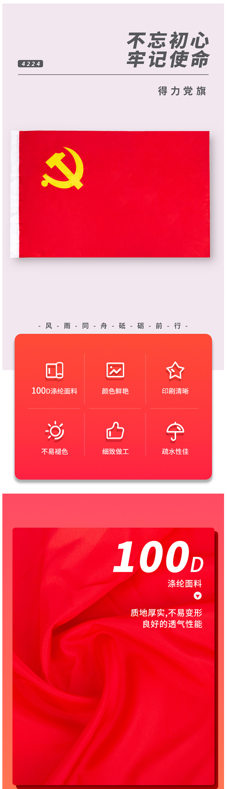 得力(deli)涤纶面料加厚款4号党旗 144*96cm 红色 3面装 4224 自营