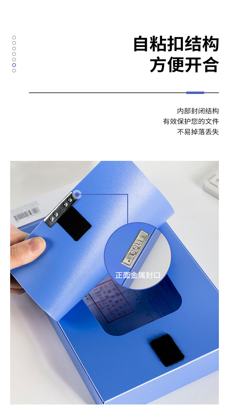 得力(deli)37mm文件盒增值税发票盒票据夹 加厚桌面财务党建试卷收纳 票据收纳 63202蓝色 自营