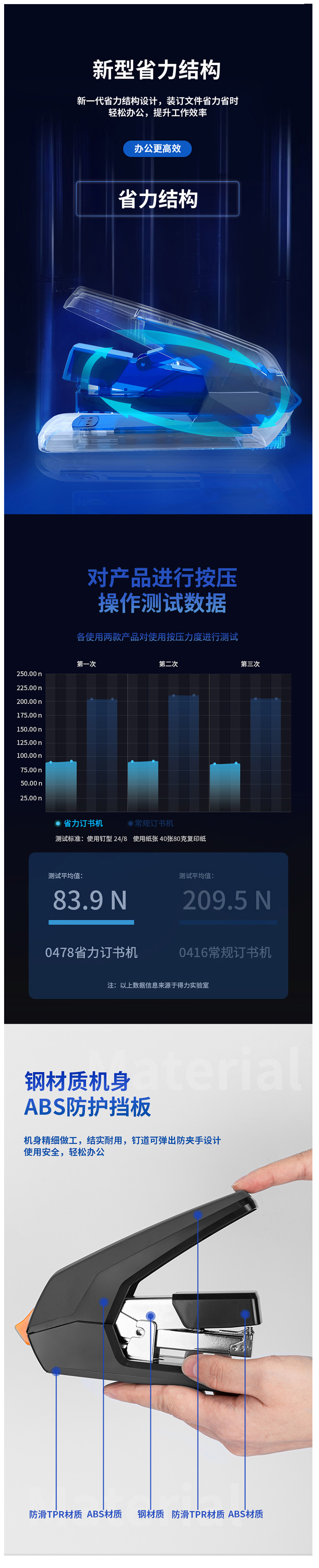 得力(deli)40页省力订书机/订书器 防卡钉功能 弹出式钉道 办公用品 黑色0478 自营
