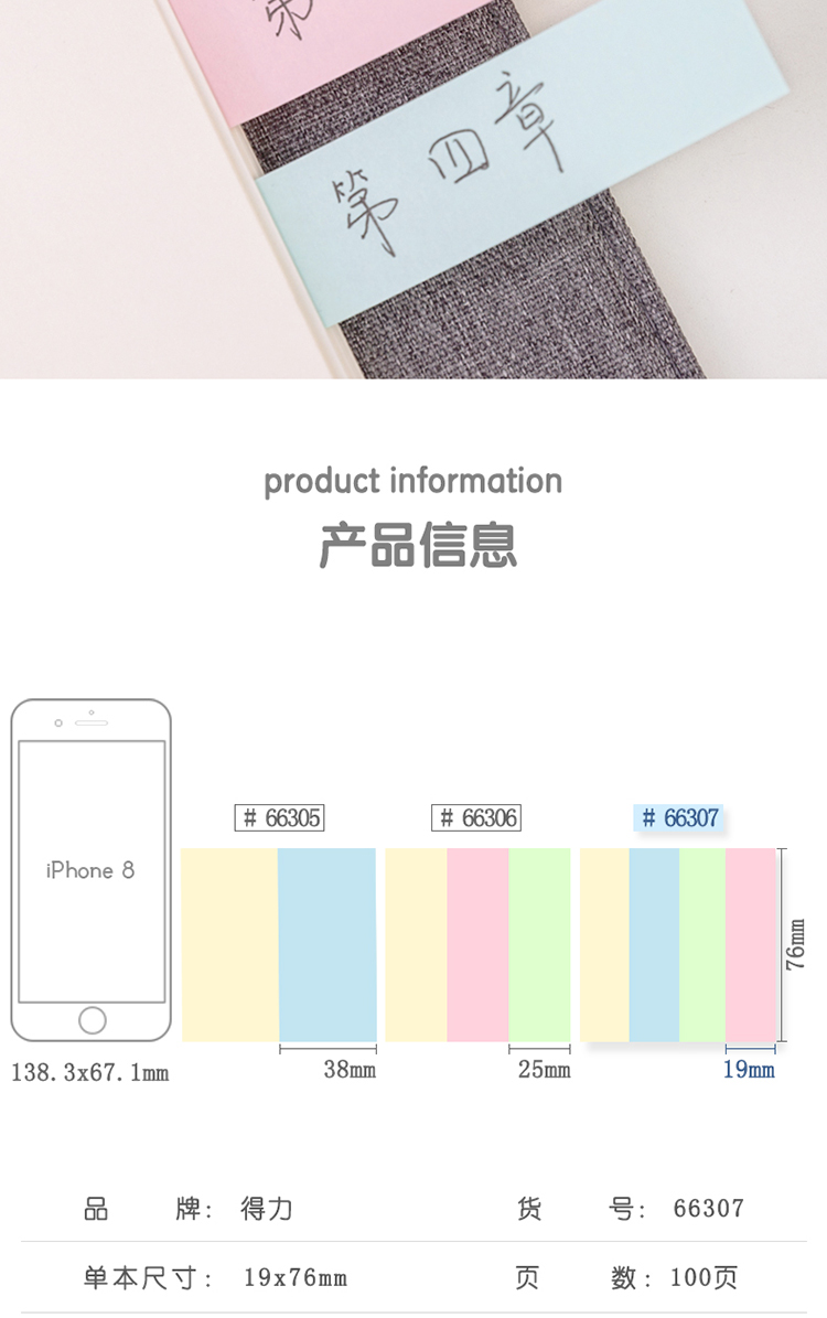 得力(deli)400张4色分条便利贴便签纸 76*19mm记事贴N次贴66307 自营
