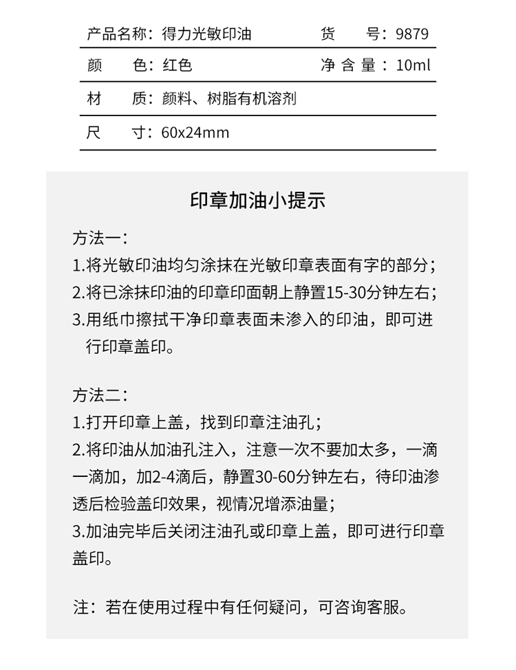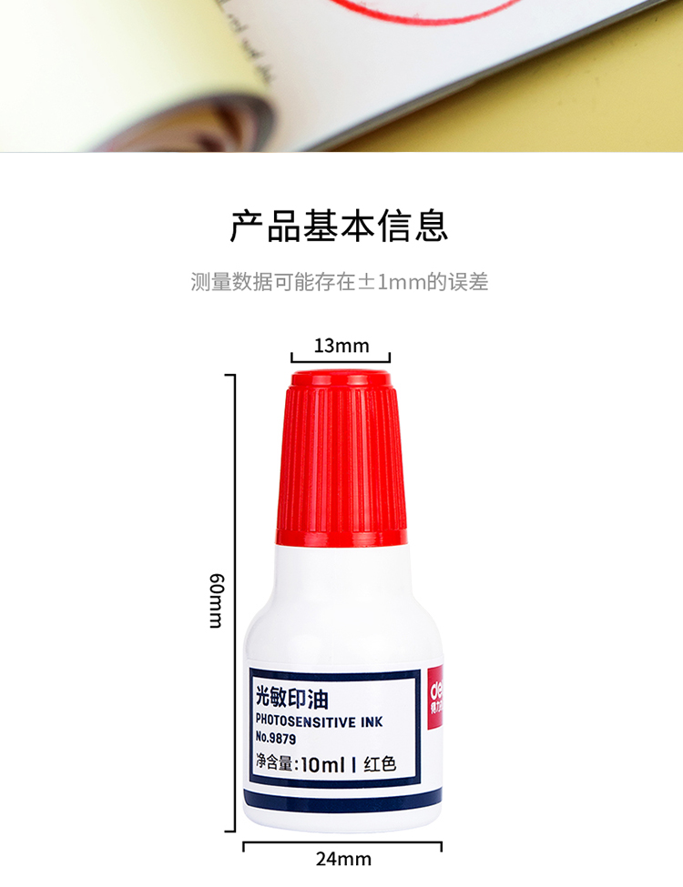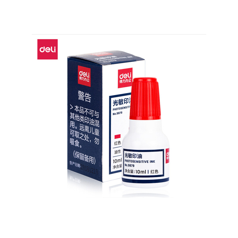 得力(deli)10ml财务印章光敏印油 红色印章印台印油 办公用品 9879 自营