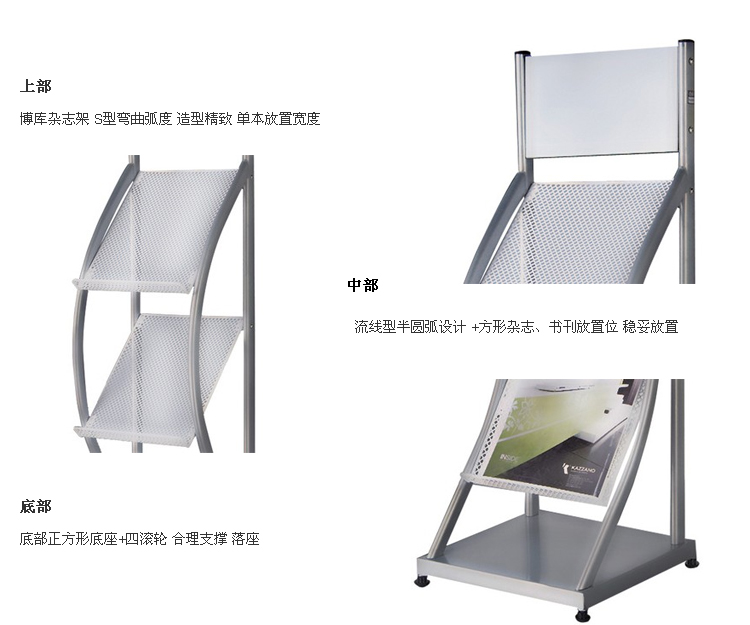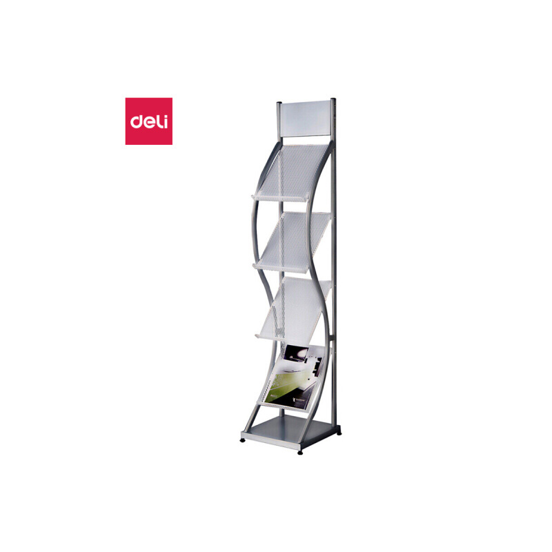 得力(deli)4层金属流线型杂志架书刊架 宣传册展示架 办公室资料架 高1.45米 9309 自营